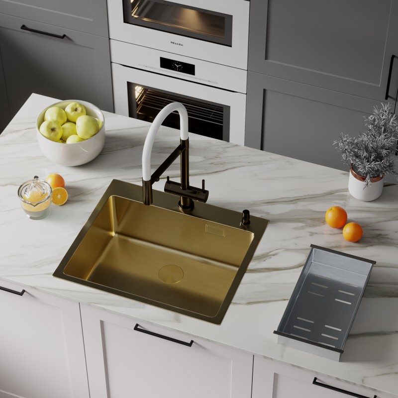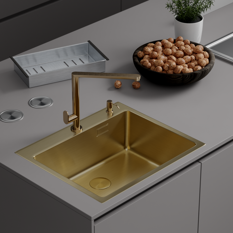 Roxen Simple 60 PVD (gold) 60х50 с каландром и дозатором в комплекте. Удобная прямоугольная модель в цвете золото, с глубокой чашей, сочетает в себе стильный современный дизайн и отличные эксплуатационные характеристики. Мойка изготовлена из аустенитно низкоуглеродистой стали марки AISI 304, которая обладает устойчивостью к коррозии, окислению и перепаду температур. Уникальное покрытие PVD Tech является защитным слоем, устойчивым к истиранию, появлению царапин и механических повреждений. Отличные шум поглощающие характеристики мойки обеспечиваются шум подавляющим составом Silent Protection и шум поглощающими пластинами Soft Silence, которые располагаются по всей чаше мойки.