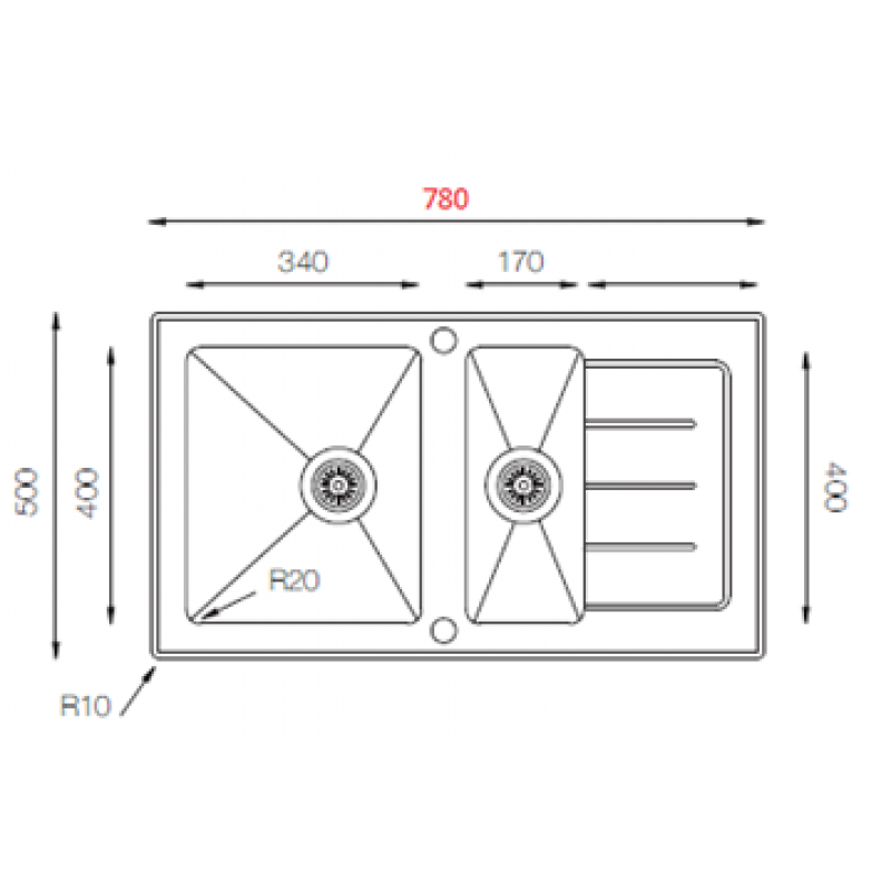 Мойка для кухни со стеклом GS Материал: нержавеющая сталь 1 мм AISI 304, закаленное ударопрочное стекло Размер мойки: 780х500 Размер чаши: 340х400; 170х400 Комплектация: Коробка, мойка, сливная арматура с автоматическим клапаном
