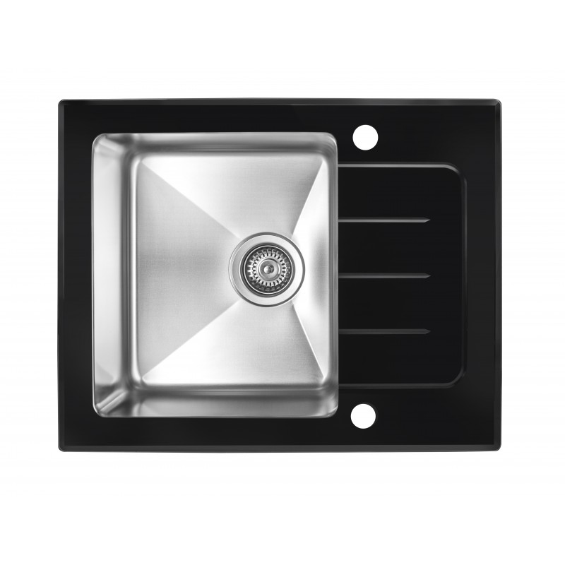 Мойка для кухни со стеклом GS Материал: нержавеющая сталь 1 мм AISI 304, закаленное ударопрочное стекло Размер мойки: 620х500 Размер чаши: 340х400 Комплектация: Коробка, мойка, сливная арматура с автоматическим клапаном