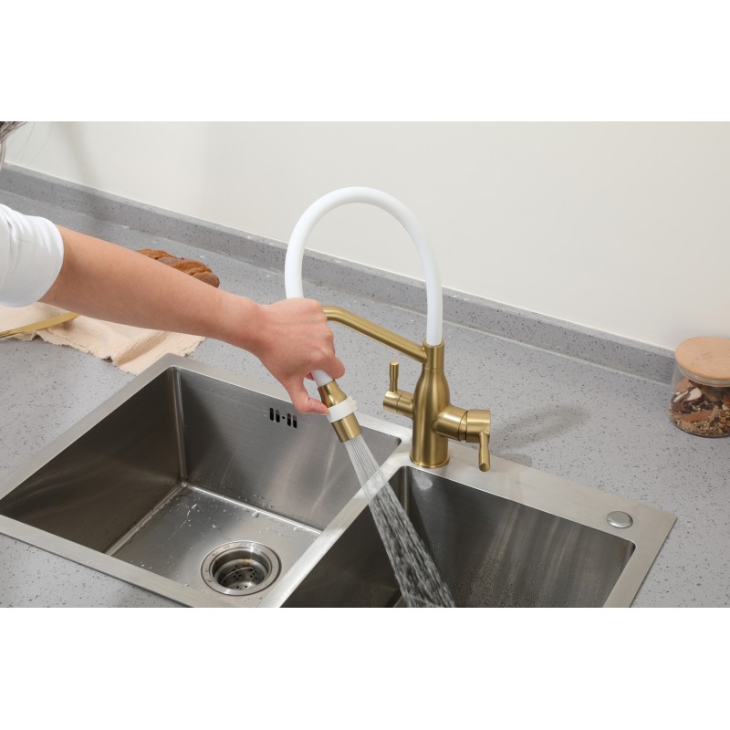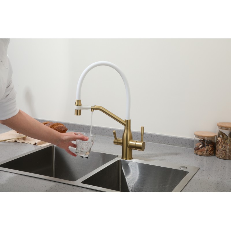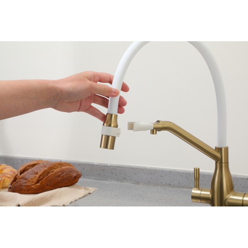 гибкий силиконовый излив фиксация излива на магните два режима обычной воды, переключатель поворотный на эараторе-лейкес подключением к фильтру питьевой воды |
