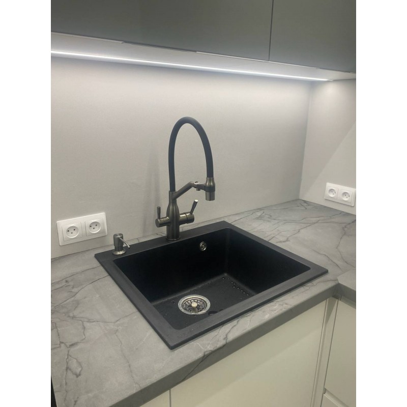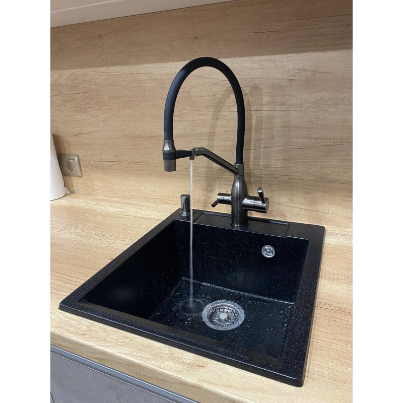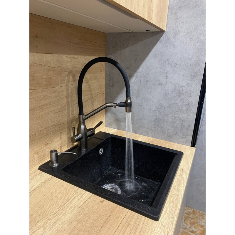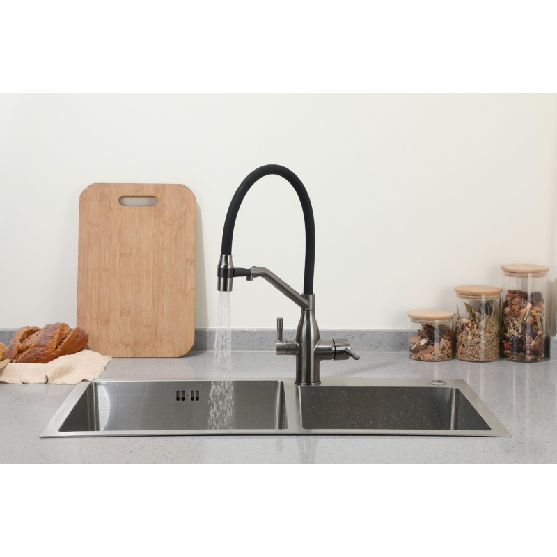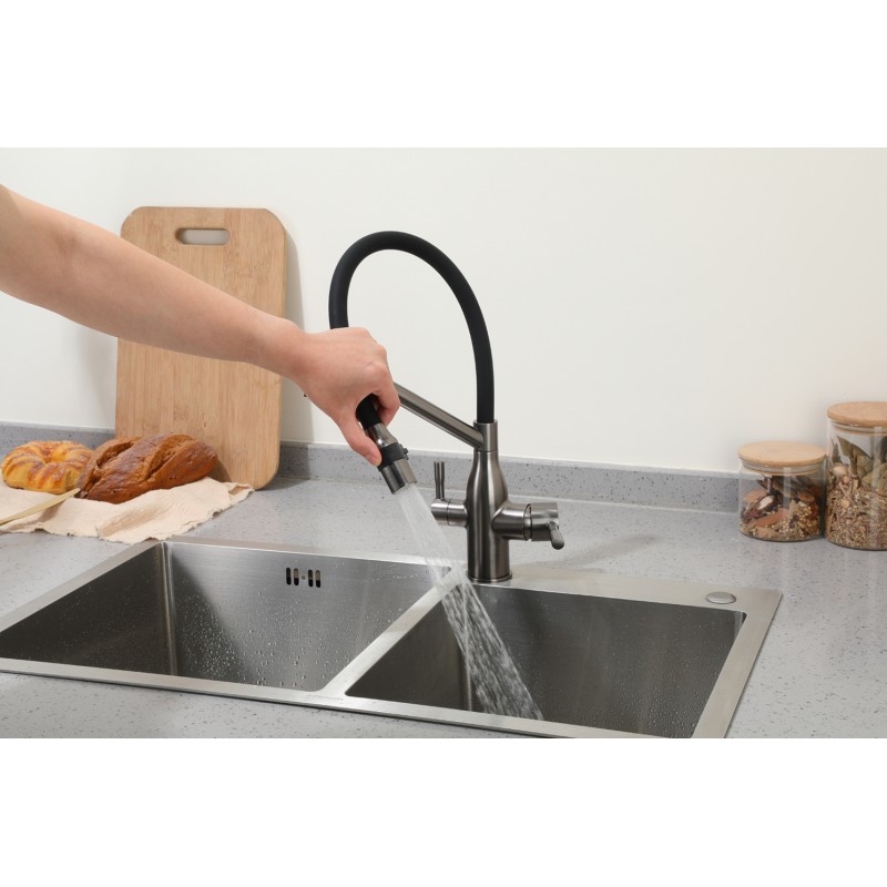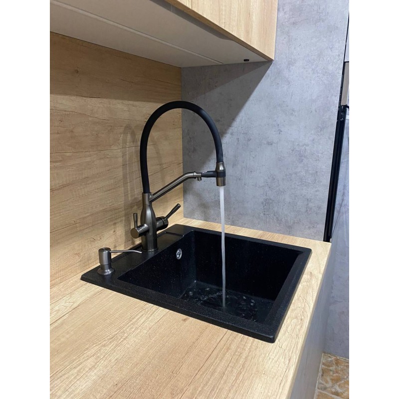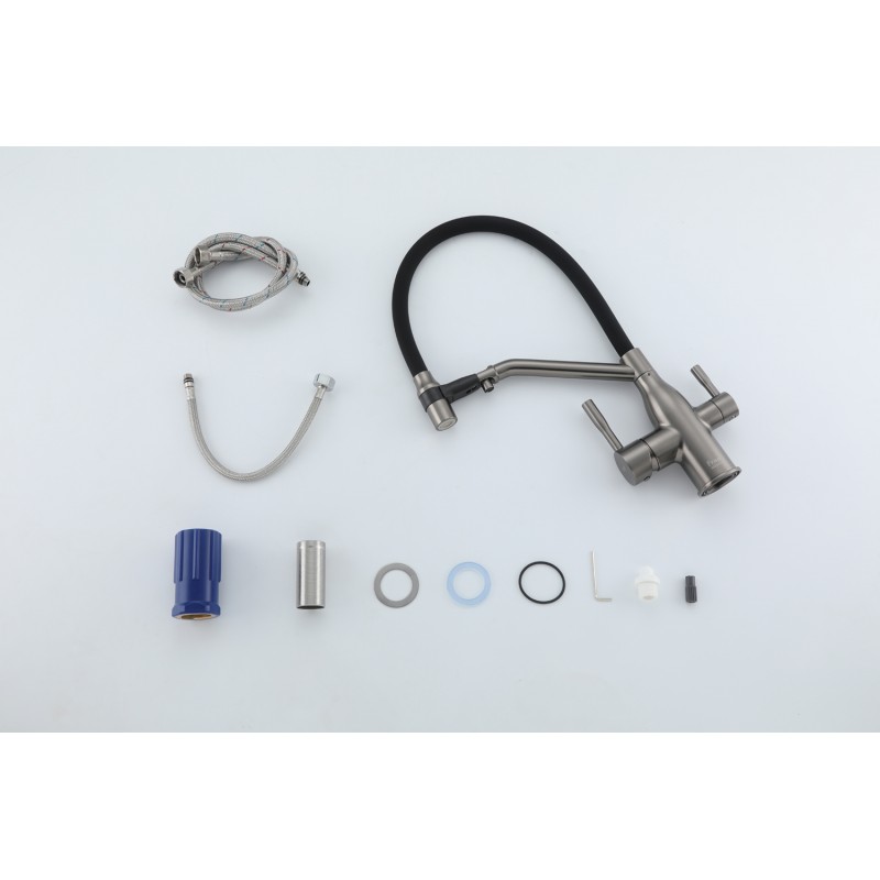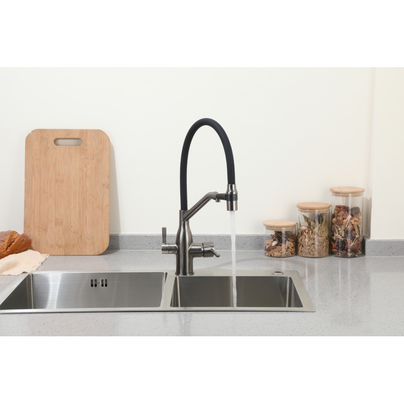 Смеситель с подключением под фильтр и с гибким изливом VIEIR 15019-G (Графит)Уникальность данно..