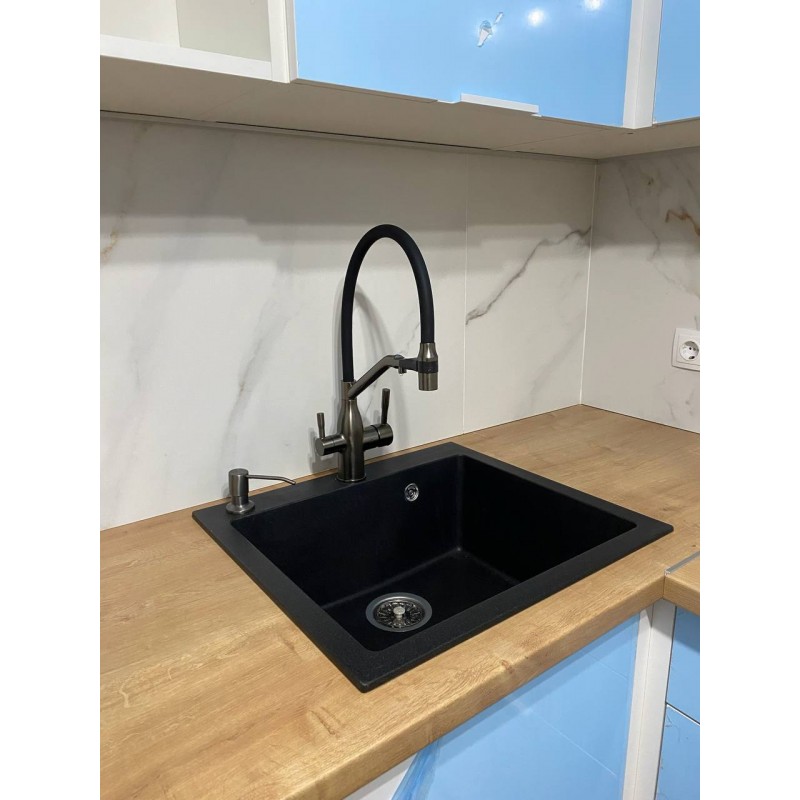 Кухонная мойка Roxen Stage 60 PVD (графит) 60х50 с каландром и дозатором в компл..