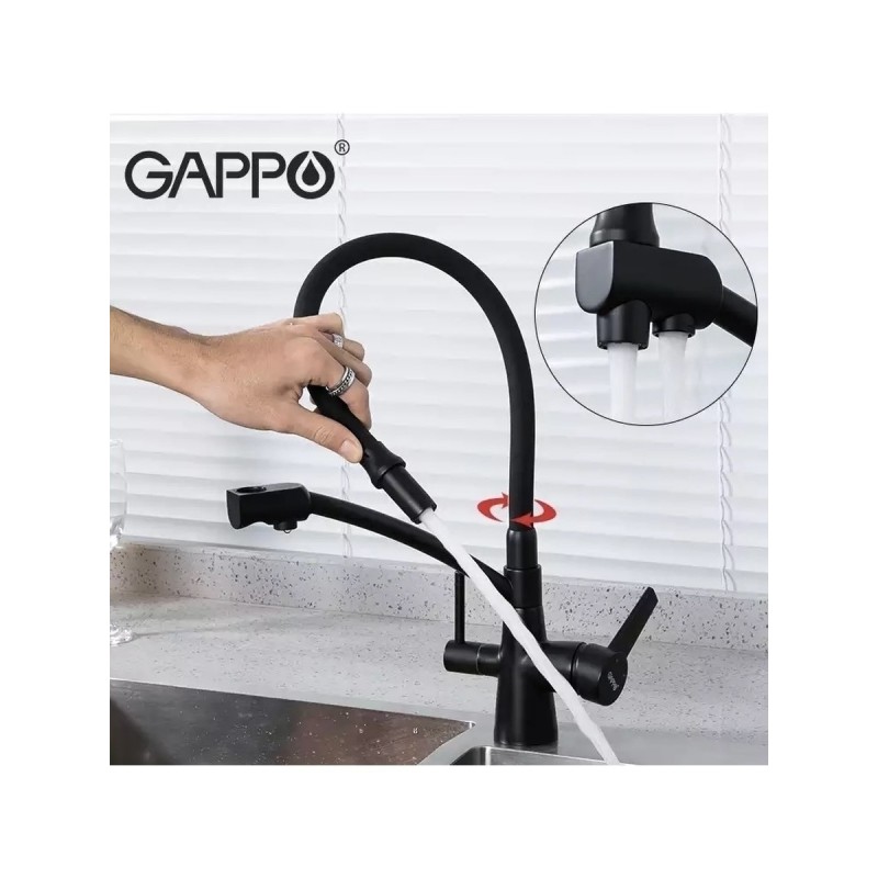 Смеситель для кухонной Gappo 4398-16 Black под фильтр