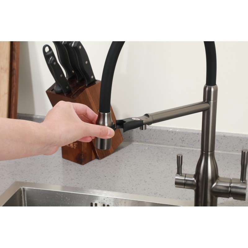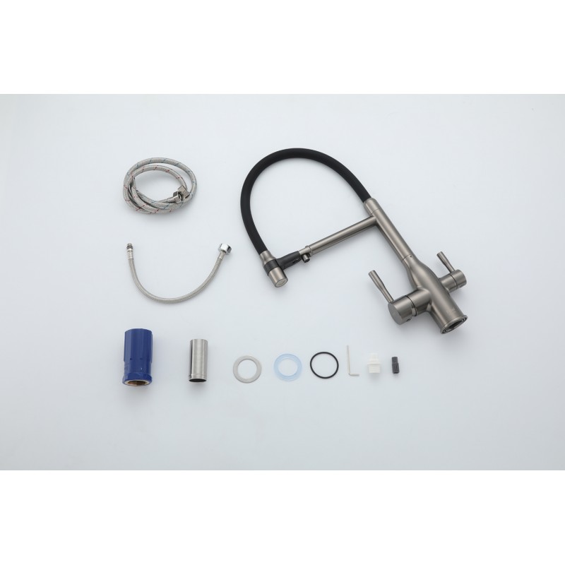 гибкий силиконовый излив фиксация излива на магните два режима обычной воды, переключатель поворотный на эараторе-лейкес подключением к фильтру питьевой воды |