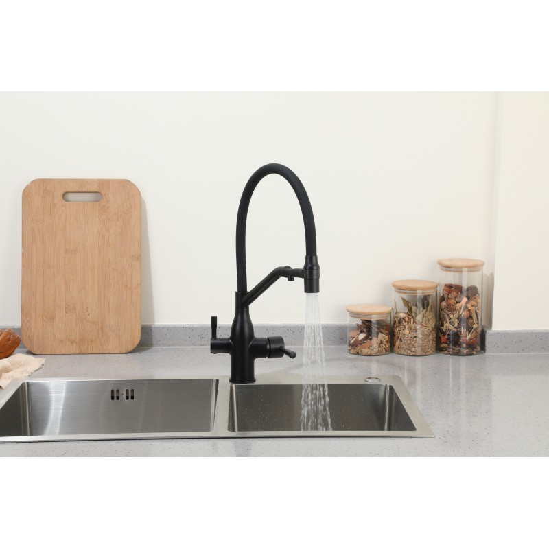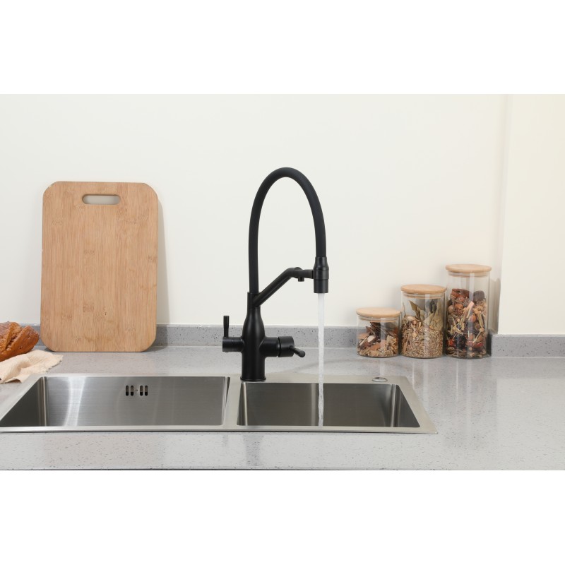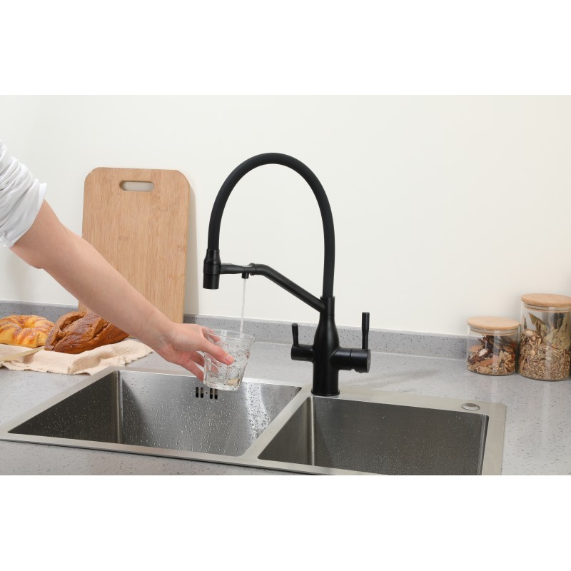 Смеситель с подключением под фильтр и с гибким изливом VIEIR 15019-G (Графит)Уникальность данно..