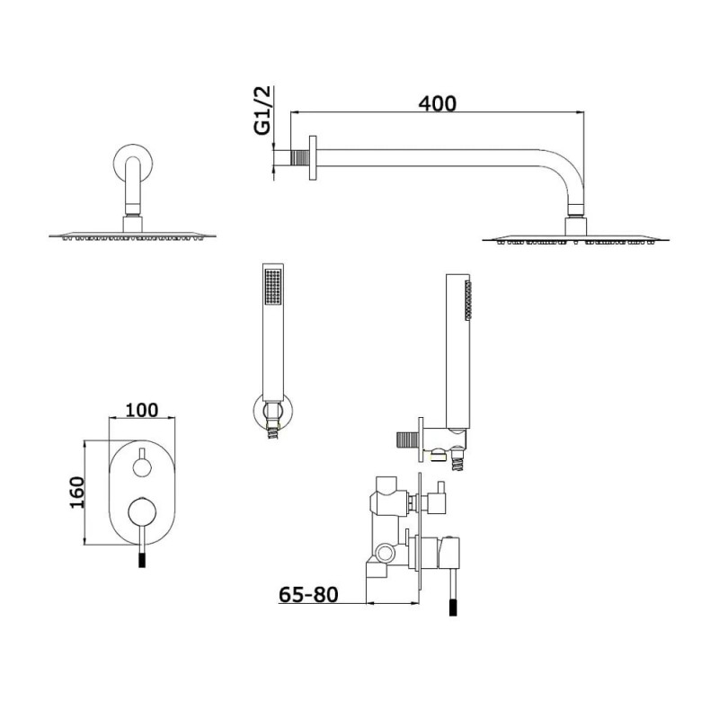 Все элементы (верхний душ, ручной душ и сам смеситель) данного смесителя монтируются в стену Вашей ванной комнаты, что придаёт максимальную эстетичность интерьеру и помогает сэкономить пространство в Вашей ванной комнате.