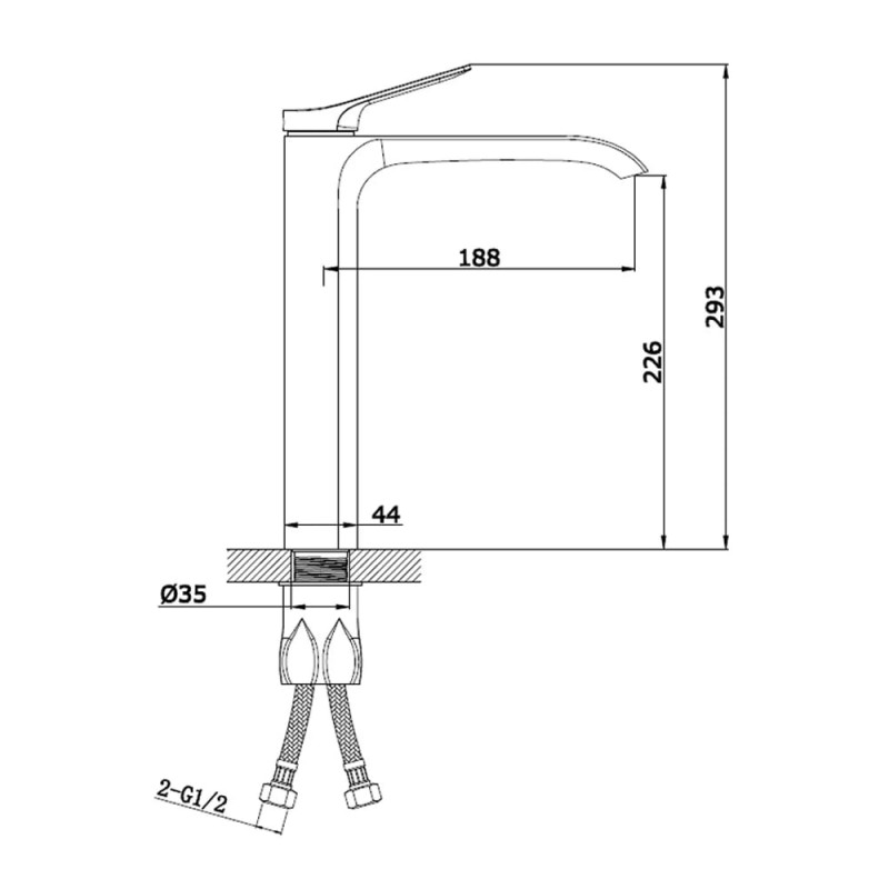| Подводка | Гайка латунь, оплетка нержавеющая сталь 304, резина EPDM, длина L=500мм |