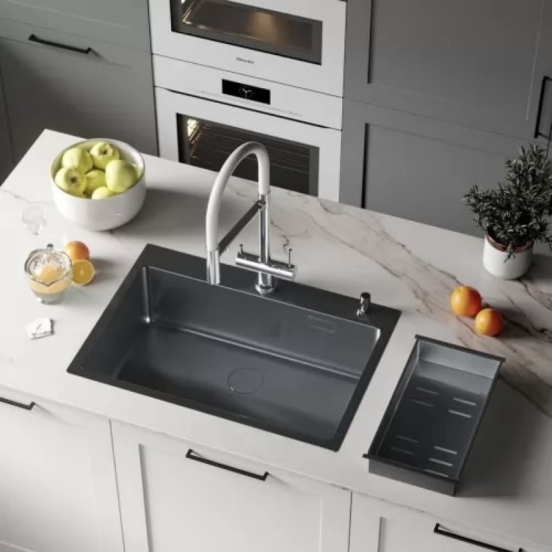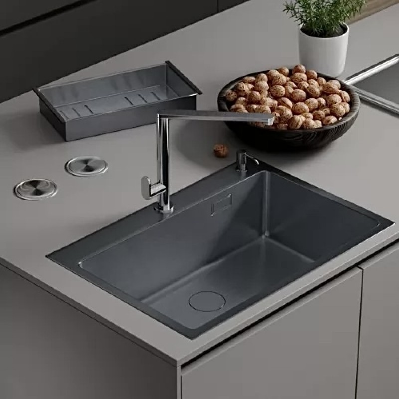 Кухонная мойка Roxen Stage 60 PVD (графит) 60х50 с каландром и дозатором в компл..