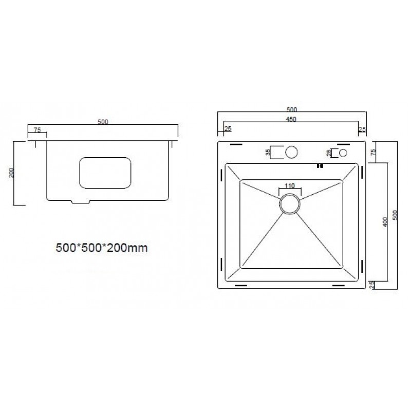 Кухонная Мойка ARFEKA ECO AR 500*500 BLACK PVD NANO DECOR