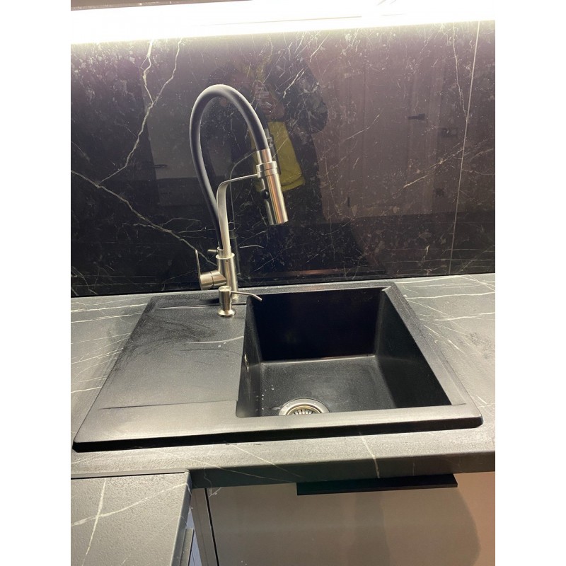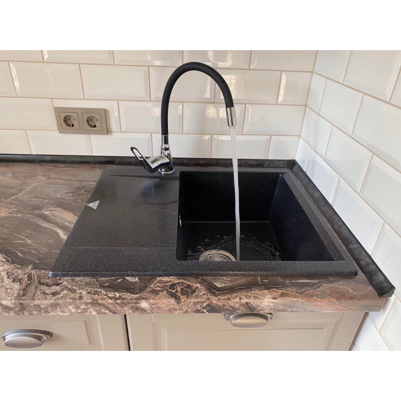 Кухонная мойка Polygran Gals 620 — прямоугольная компактная мойка с глубокой чашей. Покрытие высококачественным гелькоутом создает идеально гладкую поверхность без блеска, а также защищает от перепадов температуры, впитывания загрязнений и преждевременного износа. Мойка укомплектовна сливной арматурой с механическим клапаном из нержавеющей стали. Дополнительно можно приобрести смеситель для кухонной мойки Polygran с покрытием из искусственного гранита. Смеситель можно установить справа, слева или по центру бортика.